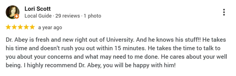 Most of our patients are referred by a trusted friends, family, or colleagues. We take our time and ensure patients are getting the most out of their treatment. Therefore, treatment times are generally 20 minutes or longer. Our patients also love that we provide soft tissue therapy before treatment with or without manipulation or mobilizations. In addition, we provide a clean, open friendly practice environment centered around the patient.